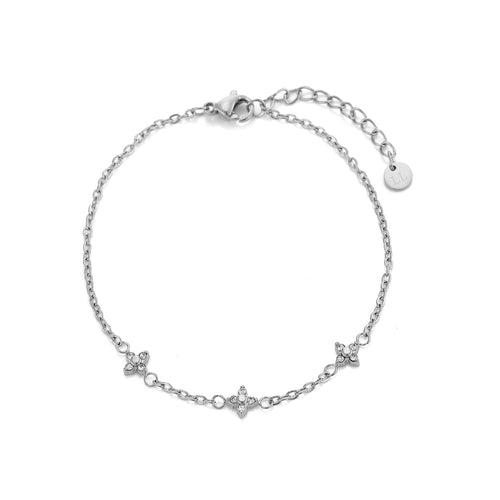 Armband bloemen met zirkonia zilver. 16 cm lang en kan nog eens met 4 cm verlengd worden. Gemaakt van hoogwaardig stainless steel. Dankzij het verlengstukje is de armband verstelbaar en geschikt voor verschillende polsmaten.