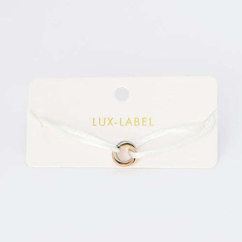 Wit goud, geelgoud, roségoud ringetjes verbinding en touw armband. 16 cm lang en kan nog eens met 4 cm verlengd worden. De ringetjes zijn ongeveer 3mm. Gemaakt van hoogwaardig stainless steel. Geschikt voor verschillende polsmaten.