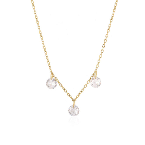 Gouden ketting met drie steentjes. Lengte 40cm en nog eens te verlengen met 5cm. Gemaakt van hoogwaardig stainless steel.