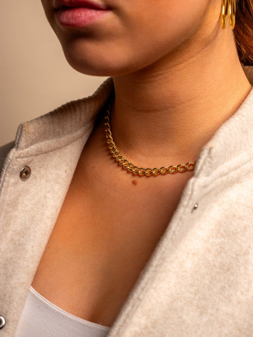 Ketting is 40 cm lang en met nog eens 5 cm langer te verstellen.