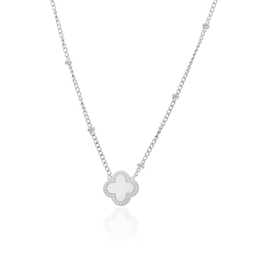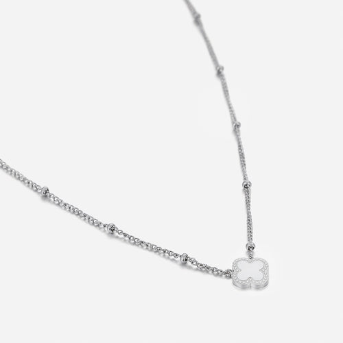 Zilveren ketting met klavertjevier. Lengte 40cm en nog eens te verlengen met 5cm. Gemaakt van hoogwaardig stainless steel.