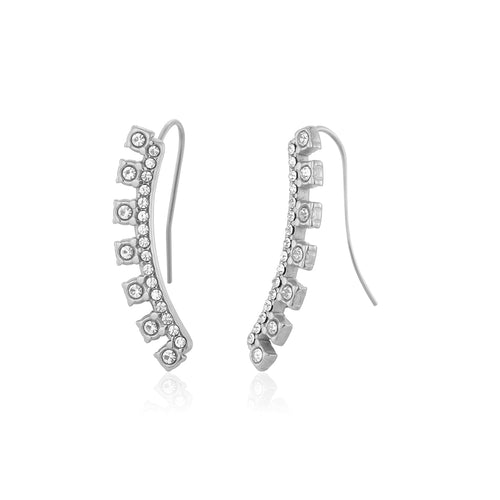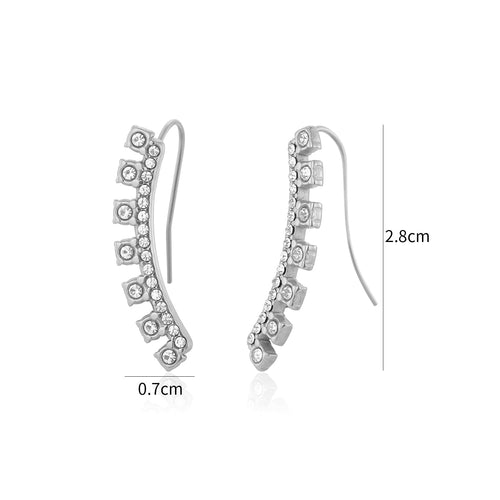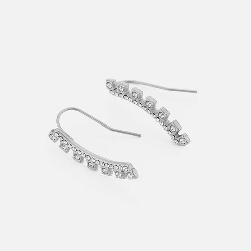 Oorbel gebogen met steentjes zilver is 2.8cm lang en 0.7cm breed. Gemaakt van hoogwaardig stainless steel.