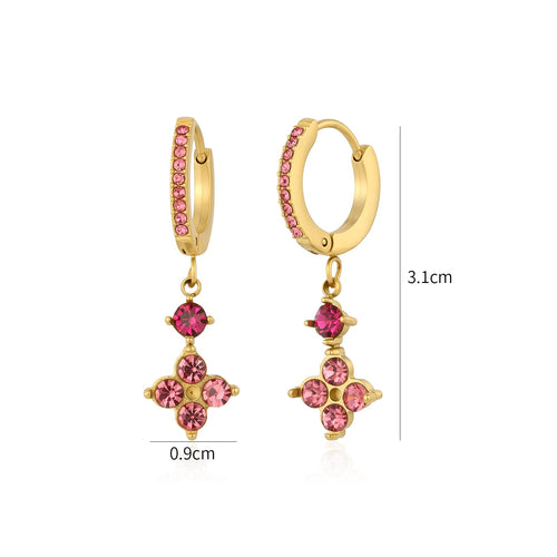 Oorbellen fancy strass roze goud zijn 3,1cm lang en 0,9cm breed. Gemaakt van hoogwaardig stainless steel.