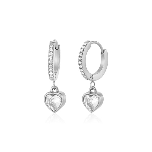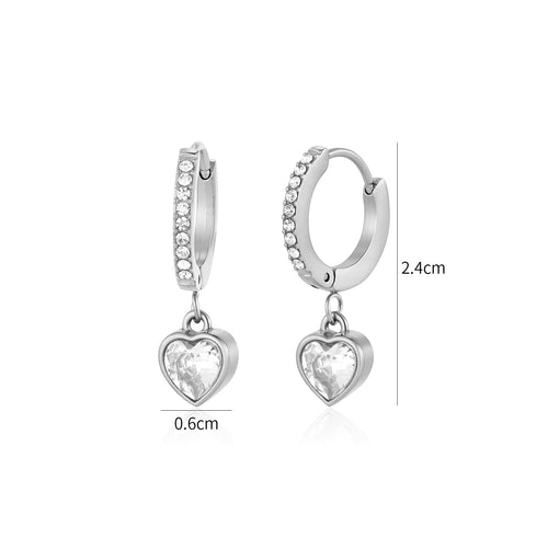 Oorbellen hartje zirkonia zilver zijn 2,4cm lang en 0,6cm breed. Gemaakt van hoogwaardig stainless steel.