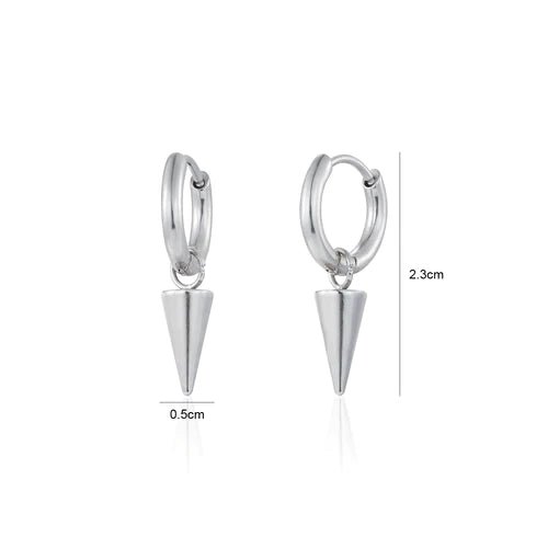 Zilveren oorbellen met puntig kegel. Deze oorbellen zijn 2.6cm lang. Gemaakt van Hoogwaardig Stainless Steel.