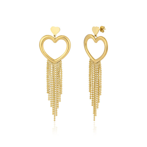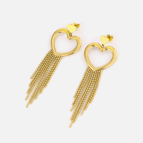Gouden statement hart oorbellen met ketting. Deze oorbellen zijn 8.2cm breed. Gemaakt van Hoogwaardig Stainless Steel.