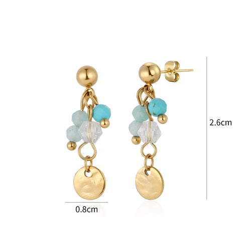 Oorbellen blauw gekleurde kralen goud zijn 2.6cm lang en 0.8cm breed. Gemaakt van hoogwaardig stainless steel.