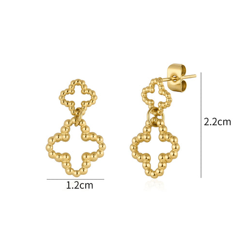 Oorstekers dubbele klaver goud zijn 2.2cm lang en 1.2cm breed. Gemaakt van hoogwaardig stainless steel.