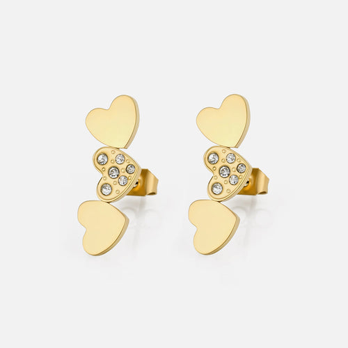 Oorstekers hartjes met steentjes goud