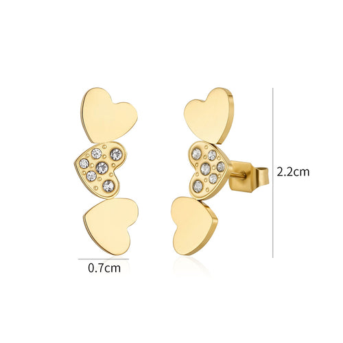 Oorstekers hartjes met steentjes goud zijn 2,2cm lang en 0,7cm breed. Gemaakt van hoogwaardig stainless steel.