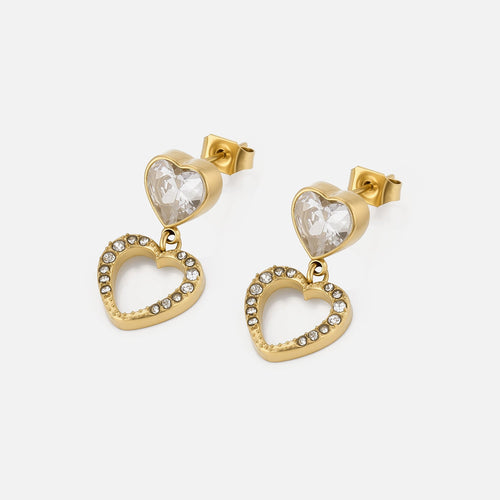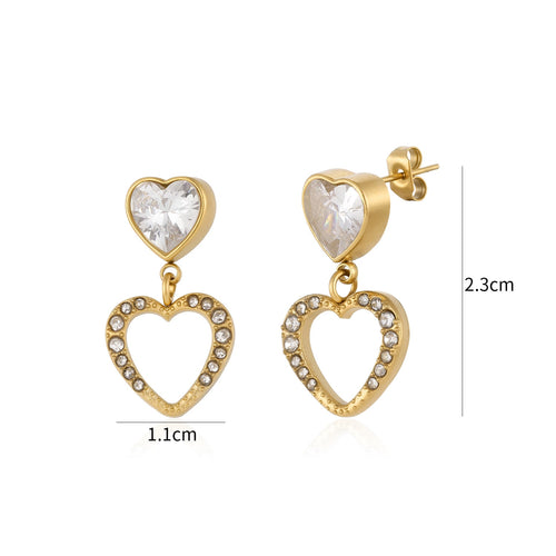Oorstekers loved strass goud is 2.3cm lang en 1.1cm breed. Gemaakt van hoogwaardig stainless steel.