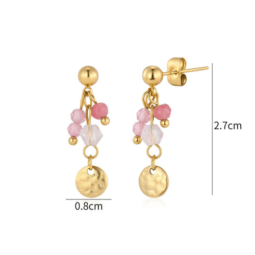Oorbellen roze gekleurde kralen goud zijn 2.7cm lang en 0.8cm breed. Gemaakt van hoogwaardig stainless steel.