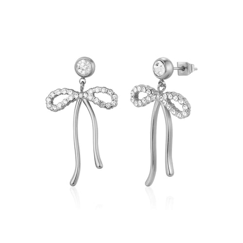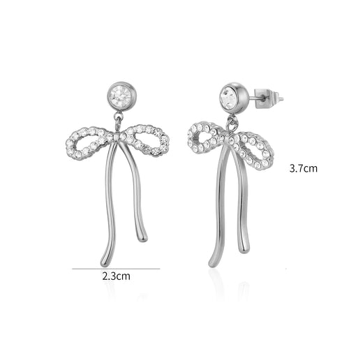 Oorstekers strik met steentjes zilver zijn 3,7cm lang en 2,3cm breed. Gemaakt van hoogwaardig stainless steel.