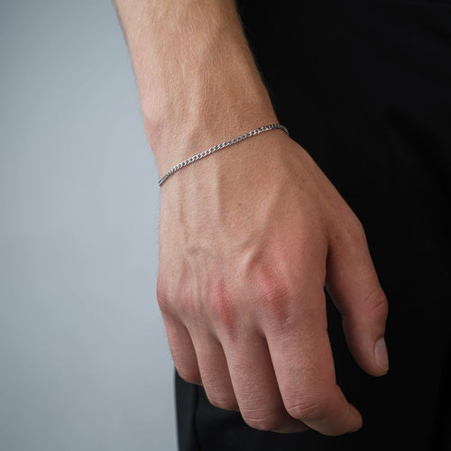 Zilveren armband. Lengte is 19cm en met 4cm verstelbaar. Gemaakt van hoogwaardig stainless steel.
