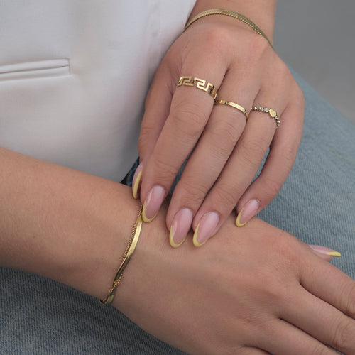 Wij vinden dat iedereen mooie sieraden moet kunnen dragen, ongeacht je maat. Daarom zijn veel van onze stukken verstelbaar. Te strak? Maak het losser. Te los? Trek het wat aan. Zo simpel is het. Of het nou een armband, ring, enkelbandje of ketting is, jij bepaalt hoe het zit. Want alleen als het lekker zit, voel je je er ook goed bij.