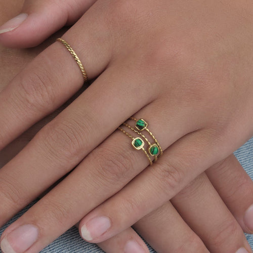 Gouden ring met groene stenen. Ring is verstelbaar naar jouw gewenste maat. Gemaakt van hoogwaardig stainless steel.