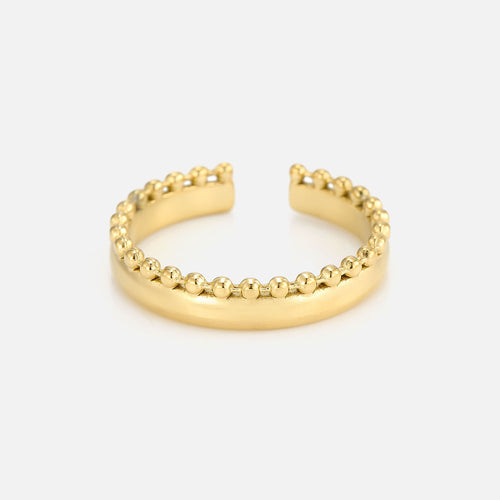 Gouden ring tweelaags bolletjes. Verstelbaar naar jouw gewenste maat. Gemaakt van hoogwaardig stainless steel.