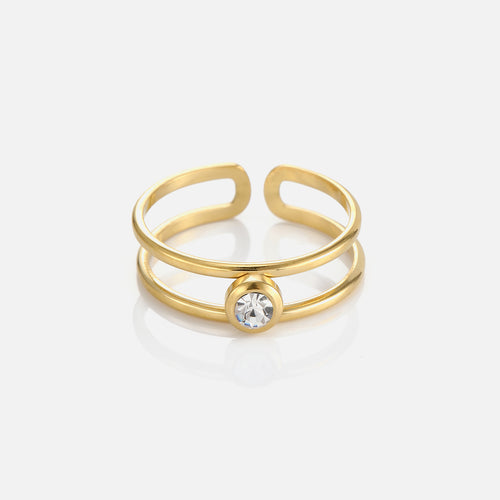 Gouden tweelaags ring met steentje. Verstelbaar naar jouw gewenste maat. Gemaakt van hoogwaardig stainless steel.