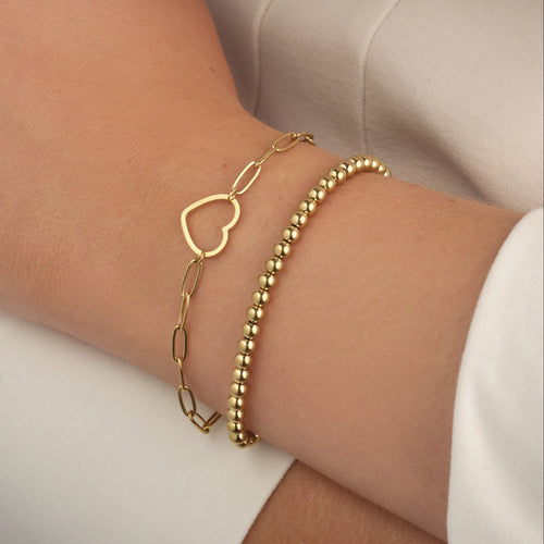 Gouden schakel armband met groot hart. 16 cm lang en kan nog eens met 4 cm verlengd worden. Gemaakt van hoogwaardig stainless steel. Dankzij het verlengstukje is de armband verstelbaar en geschikt voor verschillende polsmaten.
