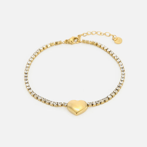 Tennis armband hartje goud is 16 cm lang en kan nog eens met 4 cm verlengd worden. Gemaakt van hoogwaardig stainless steel. Dankzij het verlengstukje is de armband verstelbaar en geschikt voor verschillende polsmaten.